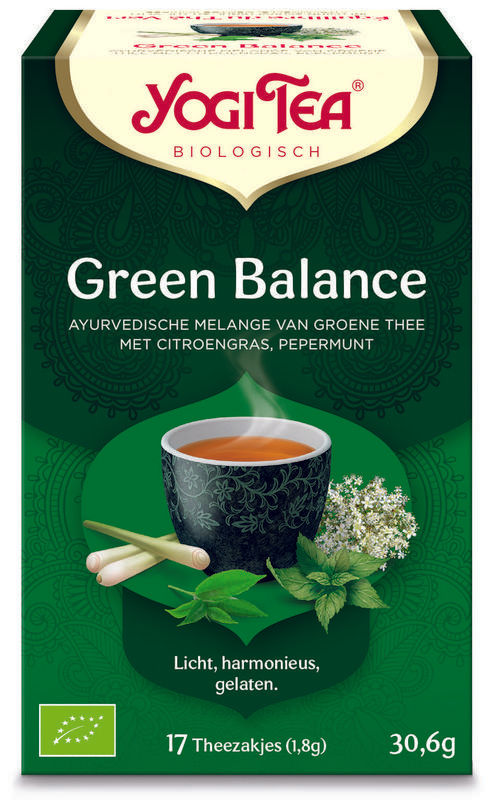 In YOGI TEA® Green Balance vertegenwoordigen groene thee en kombucha de edele Aziatische traditie van een uitgebalanceerde levensstijl van zowel lichaam als geest. Deze thee combineert de aloude traditie van groene thee met citroengras, vlierbloesem en frisse pepermunt voor een smakelijke en heerlijke melange. De essentie van deze thee is: ‘Perfecte balans’.