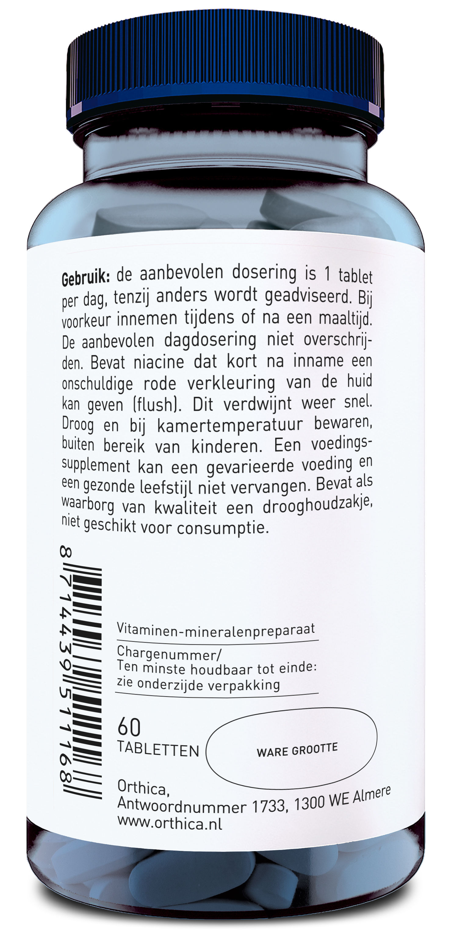 Een gevarieerde, evenwichtige voeding en een gezonde levensstijl zijn belangrijk. Een voedingssupplement is geen vervanging van een gevarieerde voeding.
