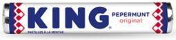 Lekkere KING Pepermunt met frisse pepermuntsmaak. De pepermuntjes zijn met de grootste zorg en de originele, natuurlijke KING pepermuntolie gemaakt. Heerlijke verfrissing op elk moment van de dag!