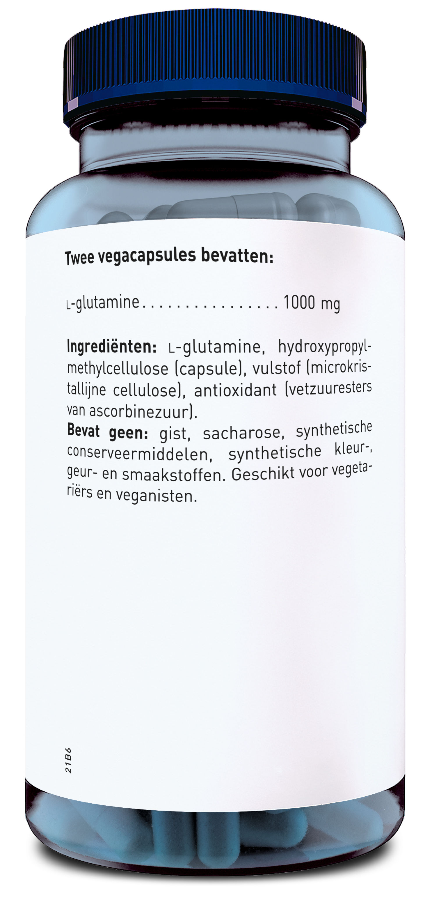 L-glutamine, hydroxypropylmethylcellulose (capsule), vulstof (microkristallijne cellulose), antioxidant (ascorbyl palmitaat)