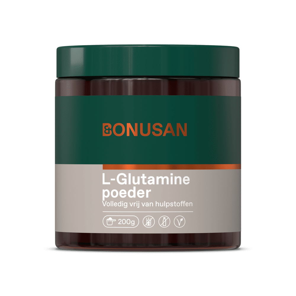 Bonusan L-Glutaminepoeder is een handig te doseren glutamineproduct. Glutamine mag dan wel door ons lichaam aangemaakt worden, soms loopt de lichaamseigen productie achter de feiten aan. Je voeding aanvullen met een supplement biedt dan uitkomst om L-glutamineniveaus op peil te houden.