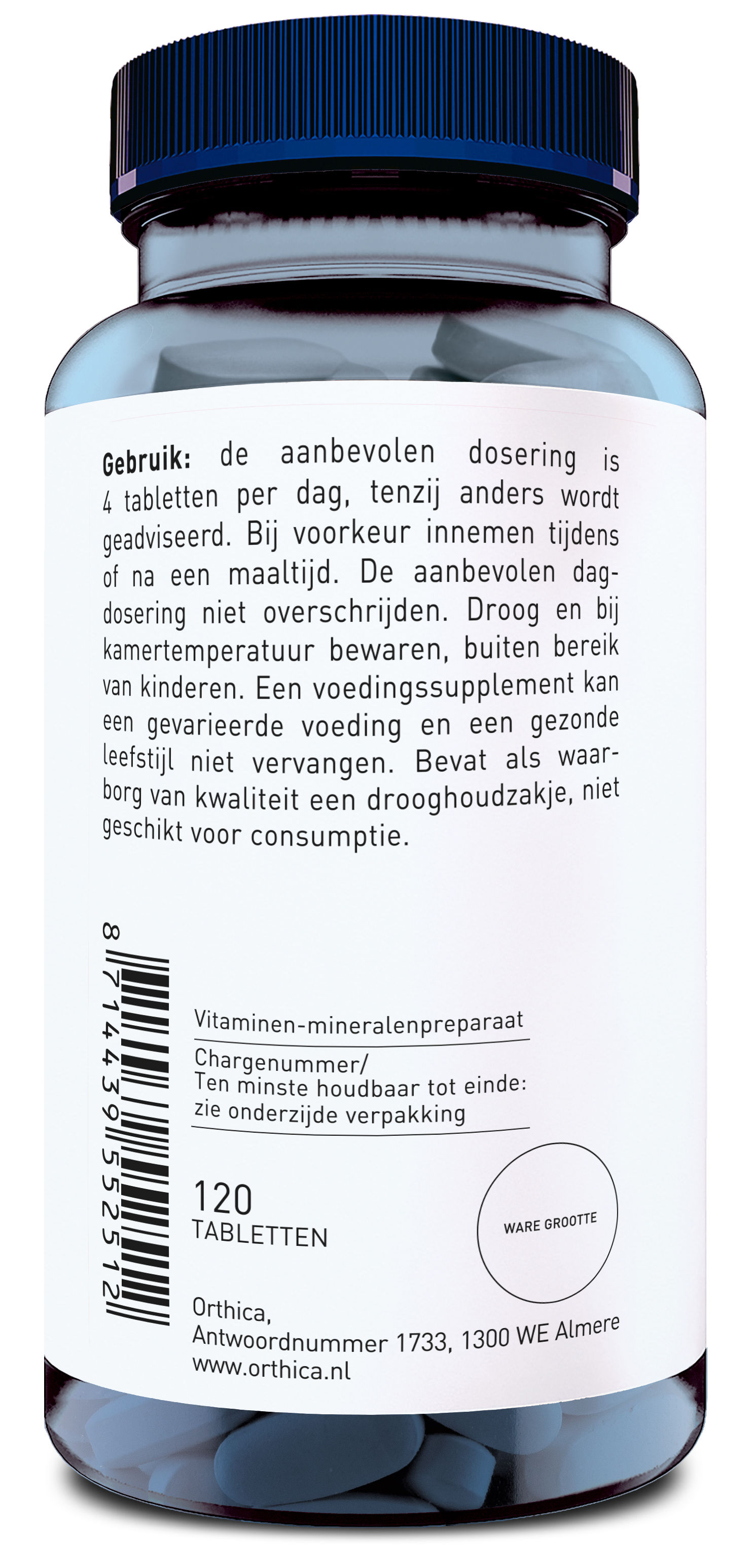 Een gevarieerde, evenwichtige voeding en een gezonde levensstijl zijn belangrijk. Een voedingssupplement is geen vervanging van een gevarieerde voeding.