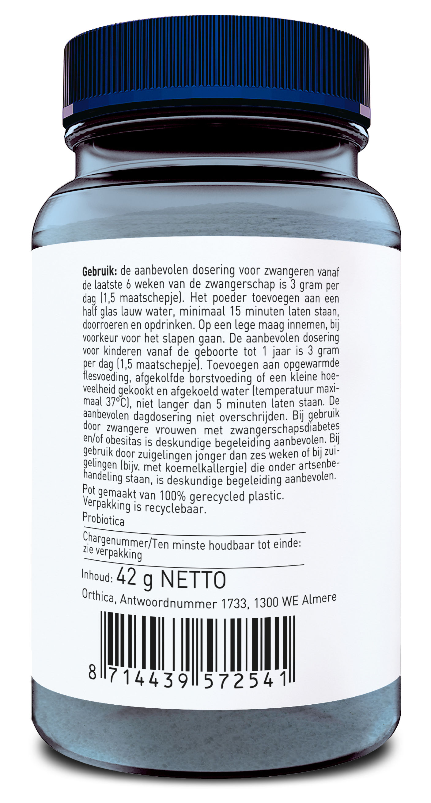 De aanbevolen dosering voor zwangeren vanaf de laatste 6 weken van de zwangerschap is 3 gram per dag (1,5 maatschepje).