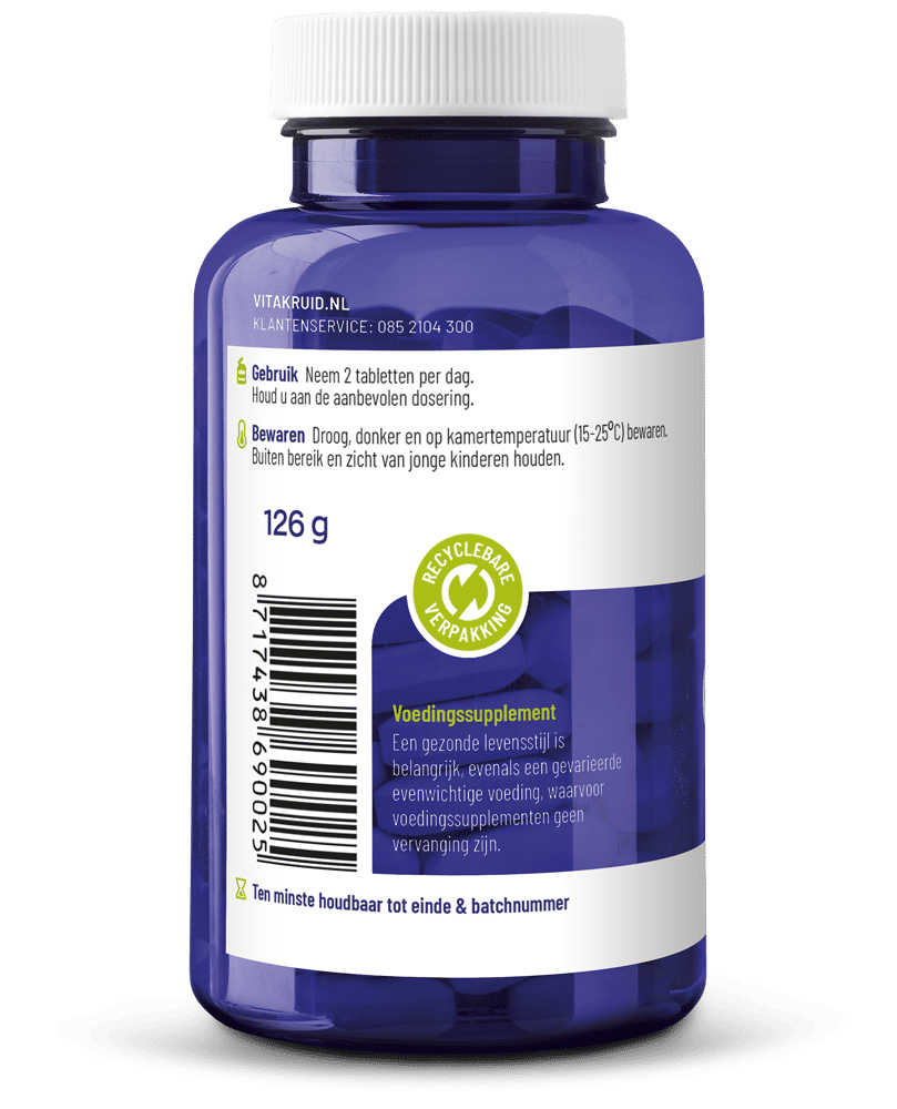 Een gevarieerde, evenwichtige voeding en een gezonde levensstijl zijn belangrijk. Een voedingssupplement is geen vervanging van een gevarieerde voeding.