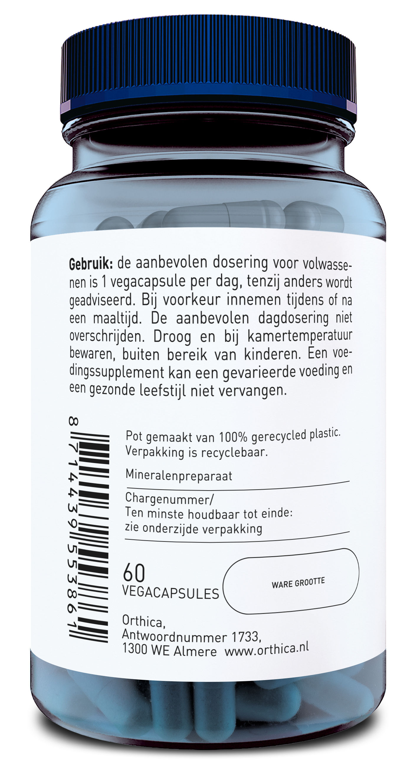 Een gevarieerde, evenwichtige voeding en een gezonde levensstijl zijn belangrijk. Een voedingssupplement is geen vervanging van een gevarieerde voeding.