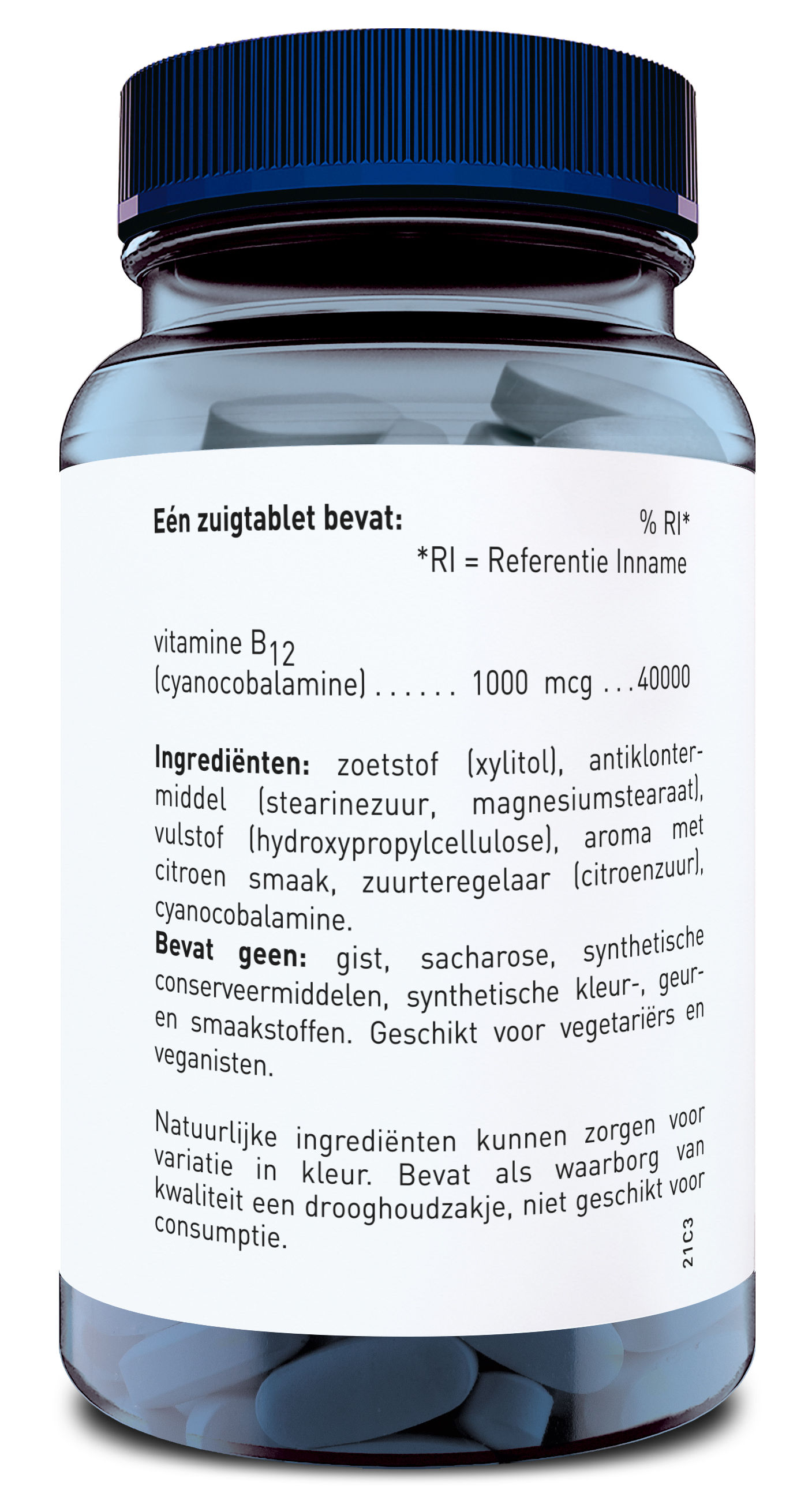 Zoetstof (xylitol), antiklontermiddel (stearinezuur, magnesiumstearaat), vulstof (hydroxypropylcellulose), aroma met citroen smaak, zuurteregelaar (citorenzuur), cyanocobalamine.