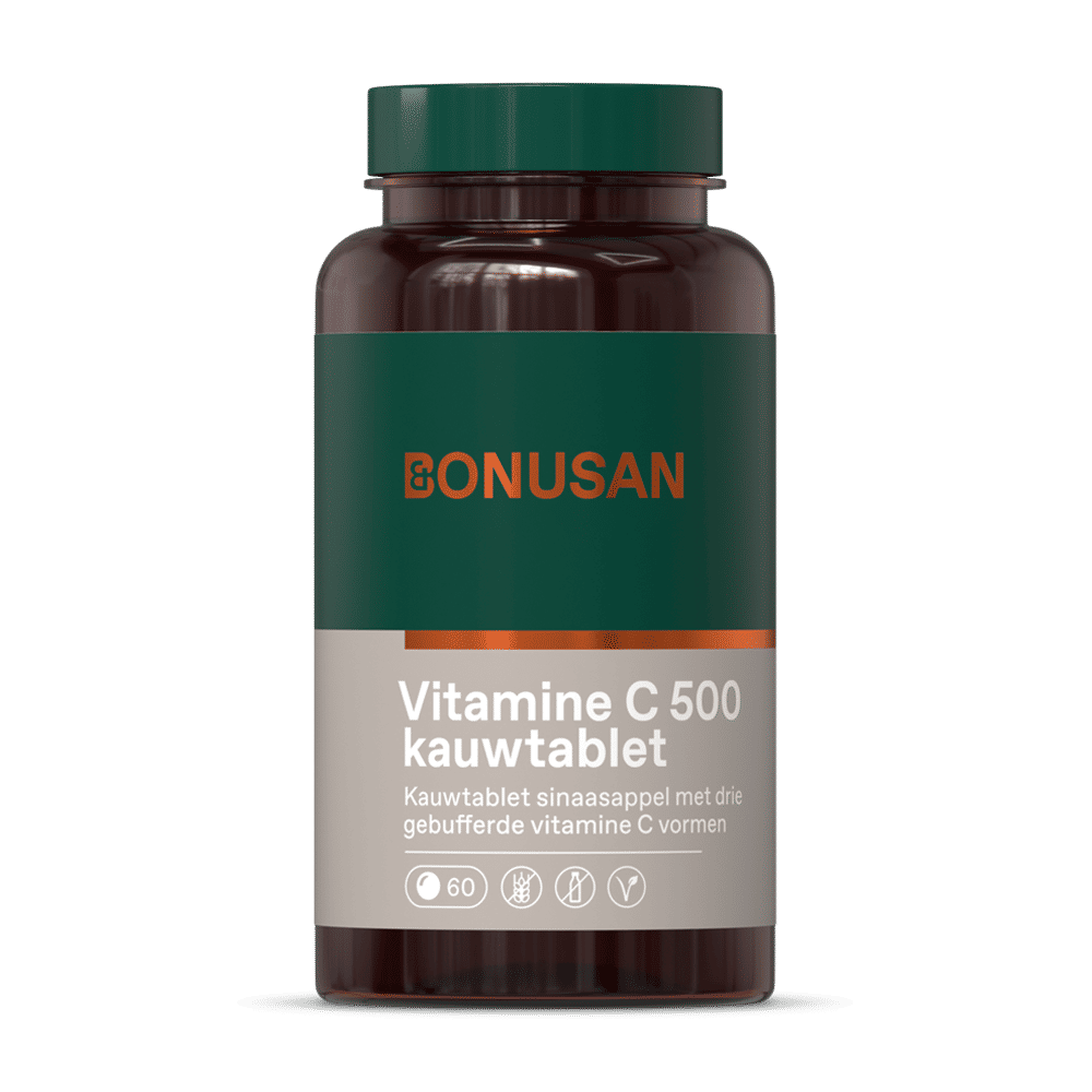 Bonusan Vitamine C-500 kauwtablet bevat ontzuurde vitamine C. Fijn voor dagelijks gebruik. Ook door kinderen, omdat de kauwtablet een prettige, zoetzure sinaasappelsmaak heeft. Bovendien verdeel je hem makkelijk in meerdere, kleinere porties. Door het toevoegen van bioflavonoïden blijft de samenstelling dicht bij de natuur.