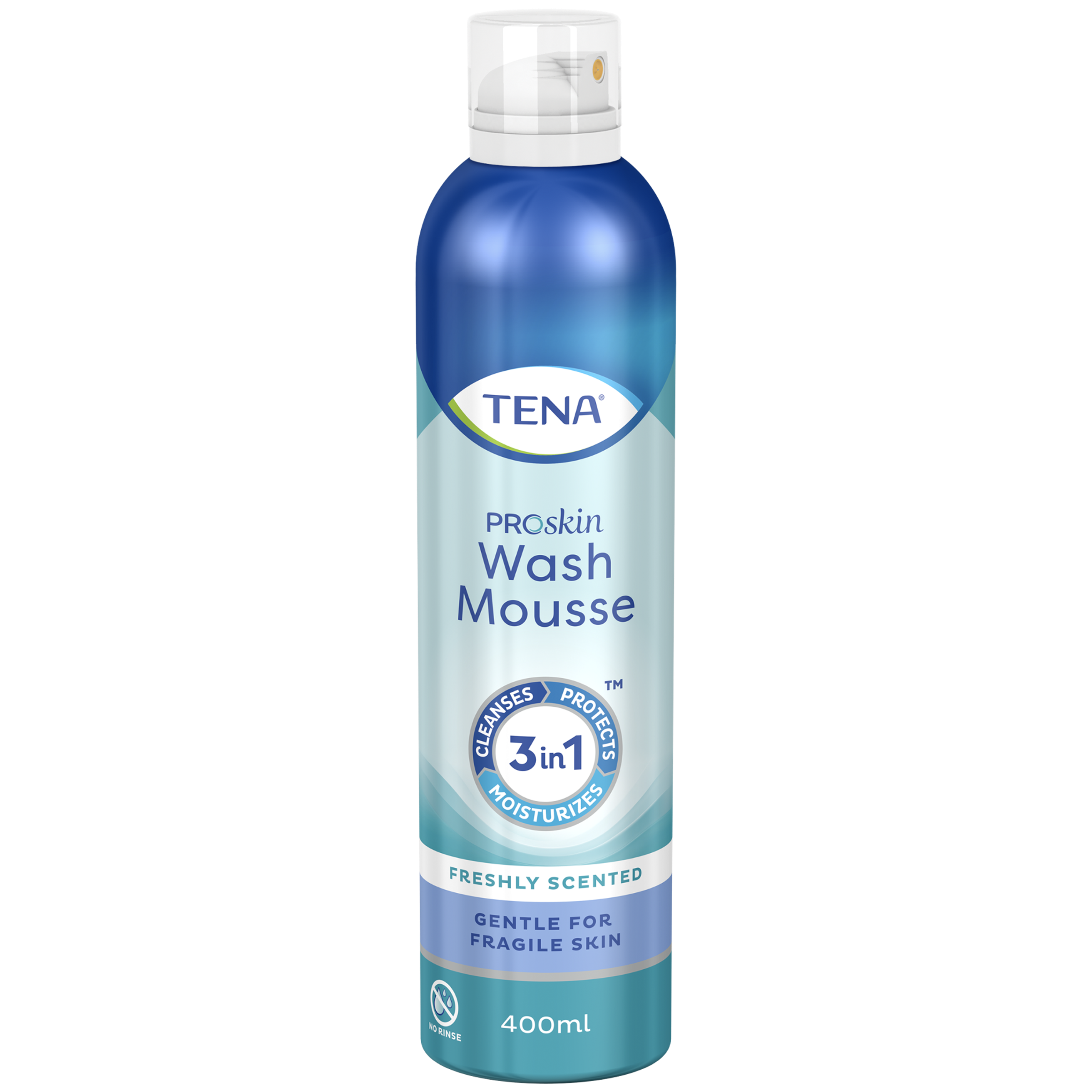TENA Wash Mousse is een mid, surfactant-vrij emulsieschuim dat ontwikkeld werd voor reiniging, herstel en bescherming van de huid. Dit schuim heeft een pH-waarde van 5,5 en is dermatologisch getest.