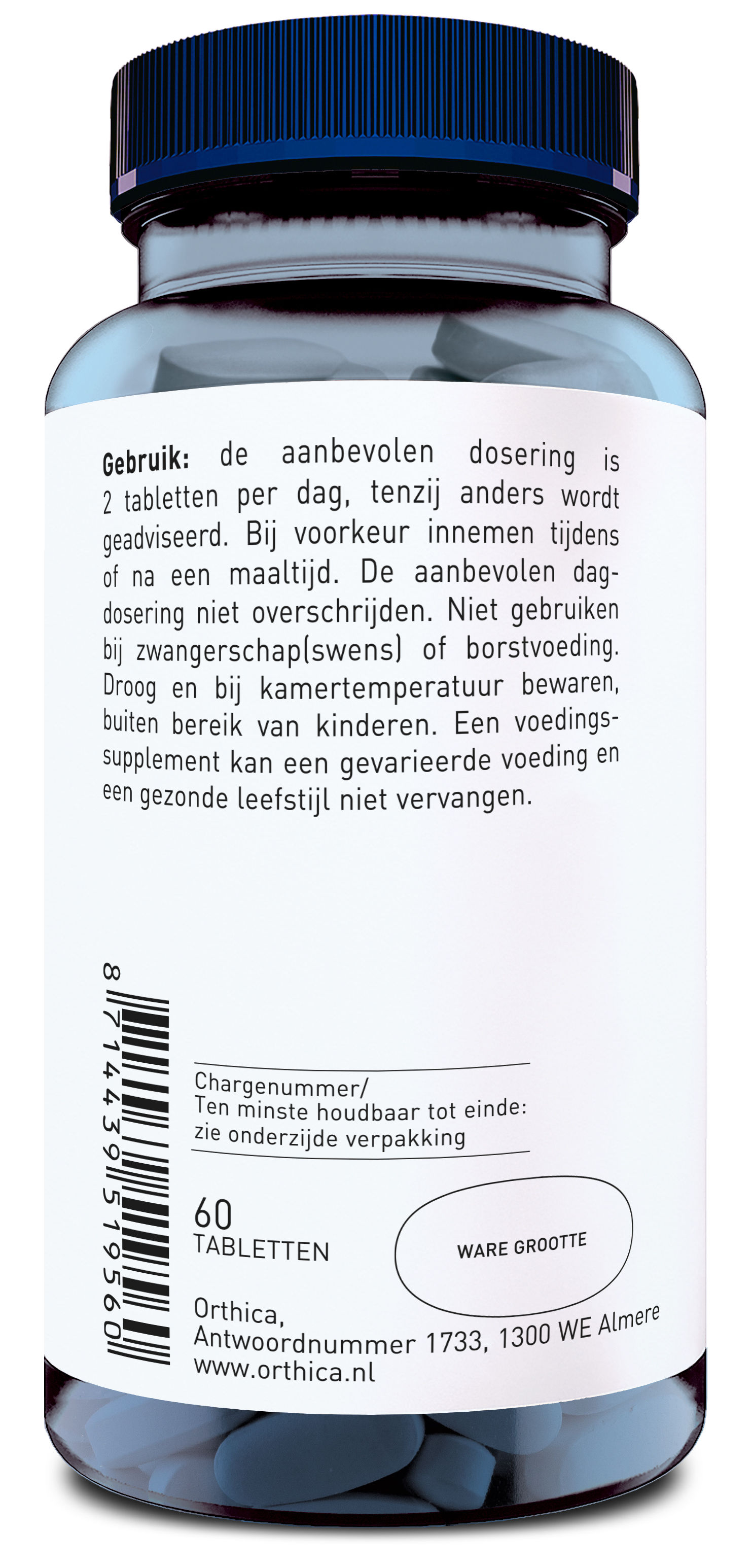 Een gevarieerde, evenwichtige voeding en een gezonde levensstijl zijn belangrijk. Een voedingssupplement is geen vervanging van een gevarieerde voeding.