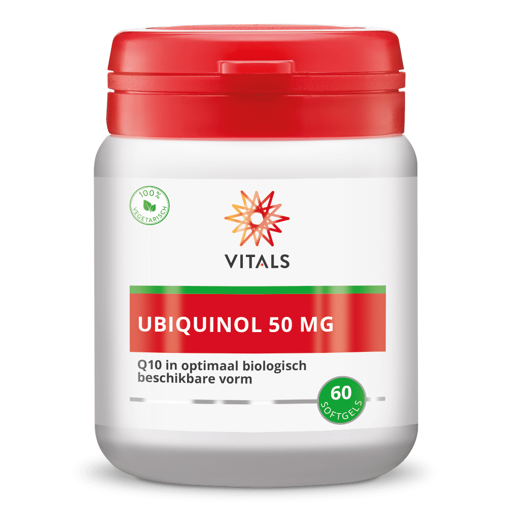 Dit product bevat 50 mg ubiquinol, de biologisch meest actieve vorm van Q10. In supplementen met Q10 wordt doorgaans de geoxideerde vorm van deze nutriënt, genaamd ubiquinon, toegepast. Geoxideerde Q10 wordt na orale inname grotendeels omgezet in ubiquinol, de gereduceerde vorm van Q10. Dit conversieproces, dat door uiteenlopende oorzaken (zoals op hogere leeftijd) moeizaam kan verlopen, is niet nodig bij gebruik van ubiquinol. Ubiquinol in een kant-en-klare vorm is sinds 2006 beschikbaar voor toepassing in supplementen. Oraal toegediende ubiquinol wordt beter opgenomen en leidt tot een grotere biologische beschikbaarheid dan ubiquinon. In veel situaties zal suppletie met ubiquinol daarom de voorkeur genieten boven gewone Q10.
