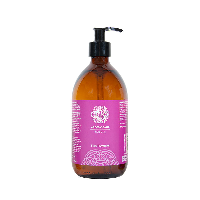 Aromassage Fun Flowers combineert bloemige essentiële oliën met de uitmuntende huidverzorgende eigenschappen van pure amandel- en jojoba olie. Deze massageolie is een heerlijke relaxolie met een zalige, volle bloemengeur. Met essentiële oliën van pure rozenolie en jasmijn tot ylang-ylang. Pure verwennerij voor de huid en de zintuigen.