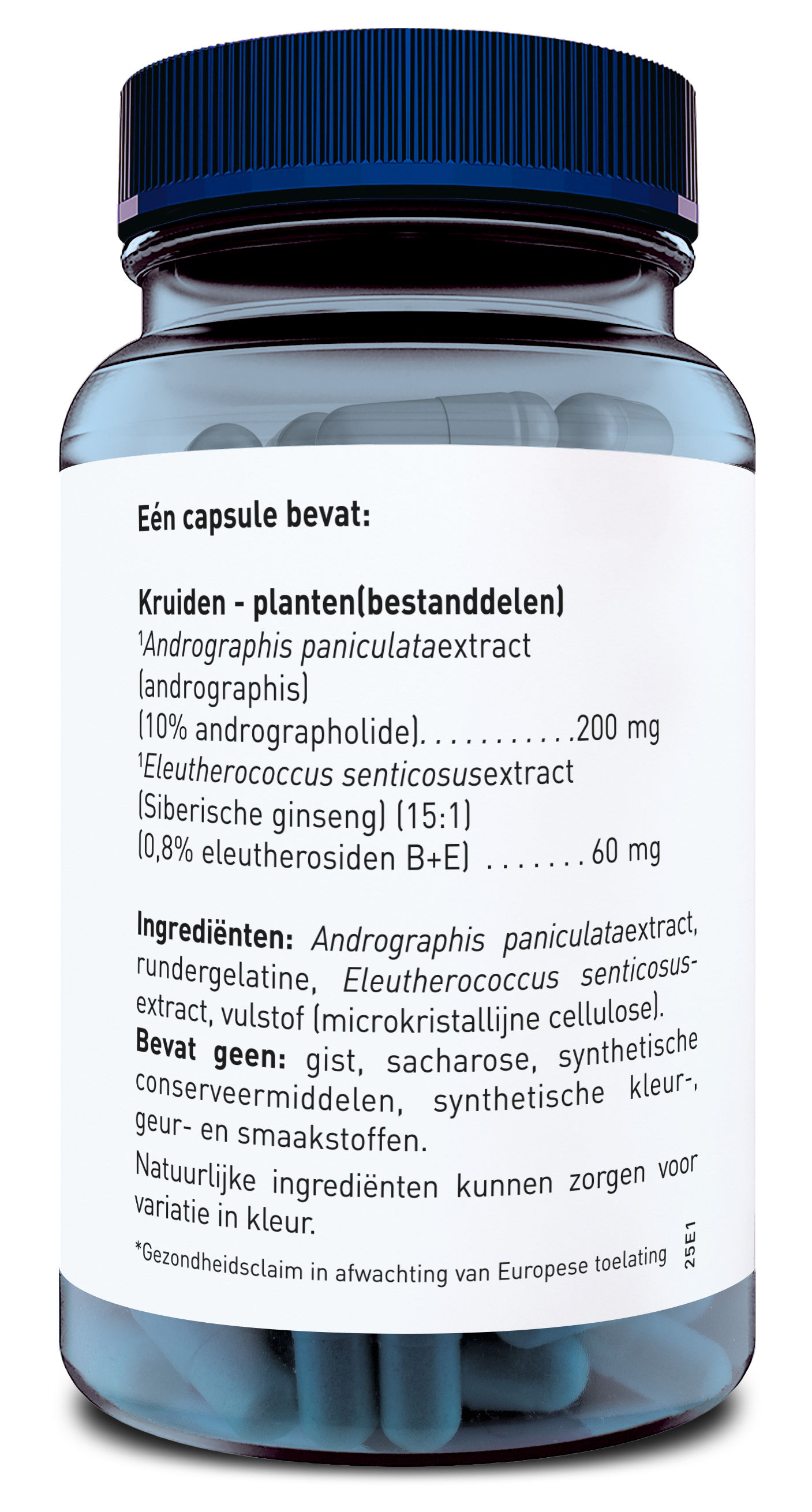Andrographis paniculataextract, rundergelatine, Eleutherococcus senticosusextract, vulstof (microkristallijne cellulose).