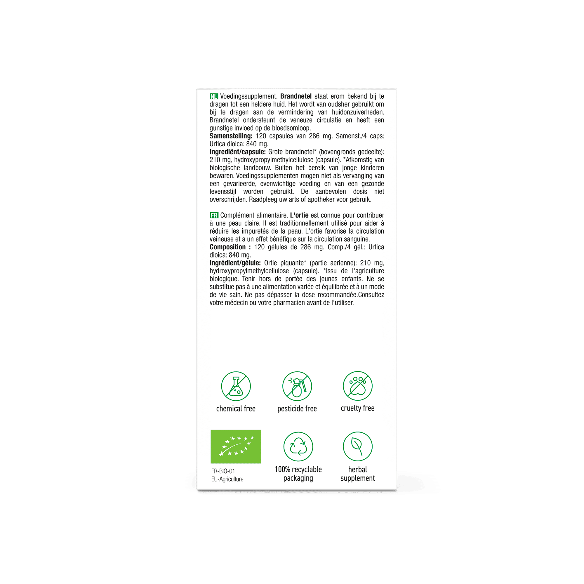Grote brandnetel* (bovengronds gedeelte), Capsule: plantaardig geleermiddel (hydroxypropylmethylcellulose)