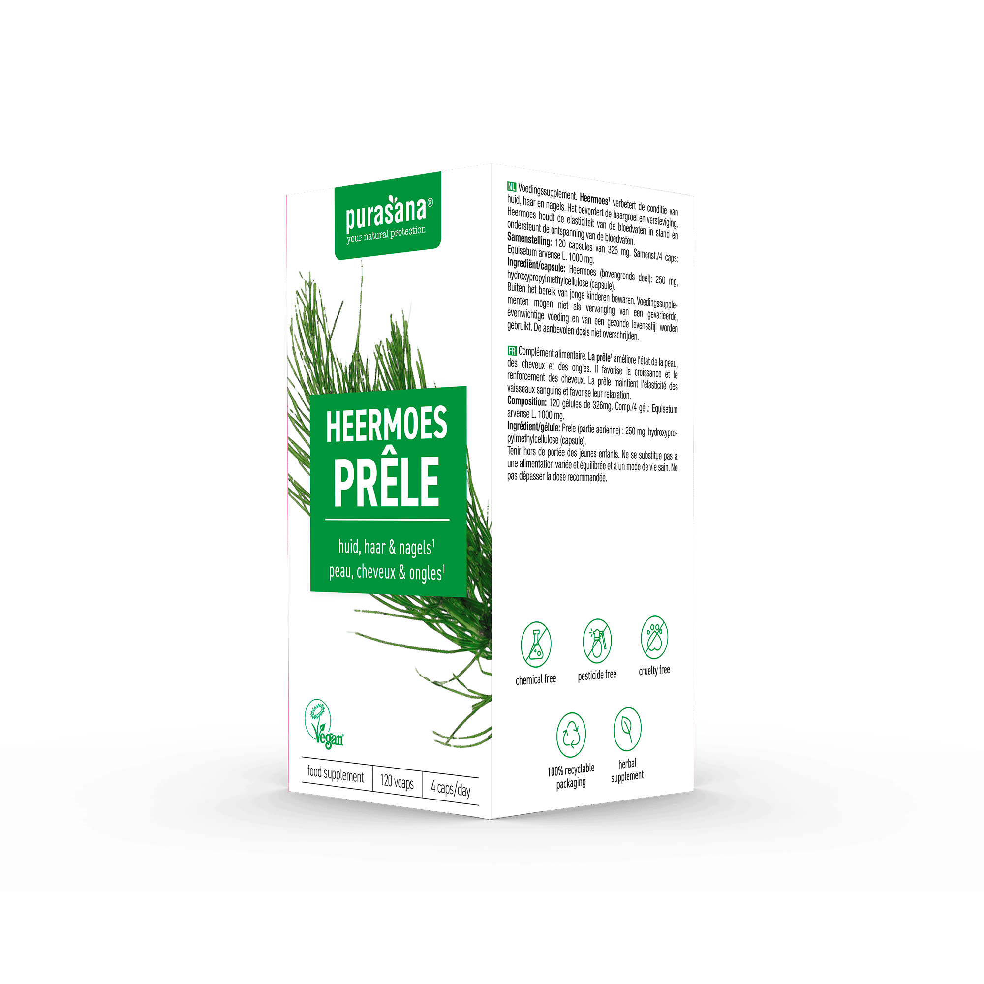Heermoes is een plant die ook wel bekend staat als paardenstaart. Het extract van deze plant zit boordevol vitaminen, mineralen zoals calcium, magnesium en ijzer maar ook vezels en silicium.