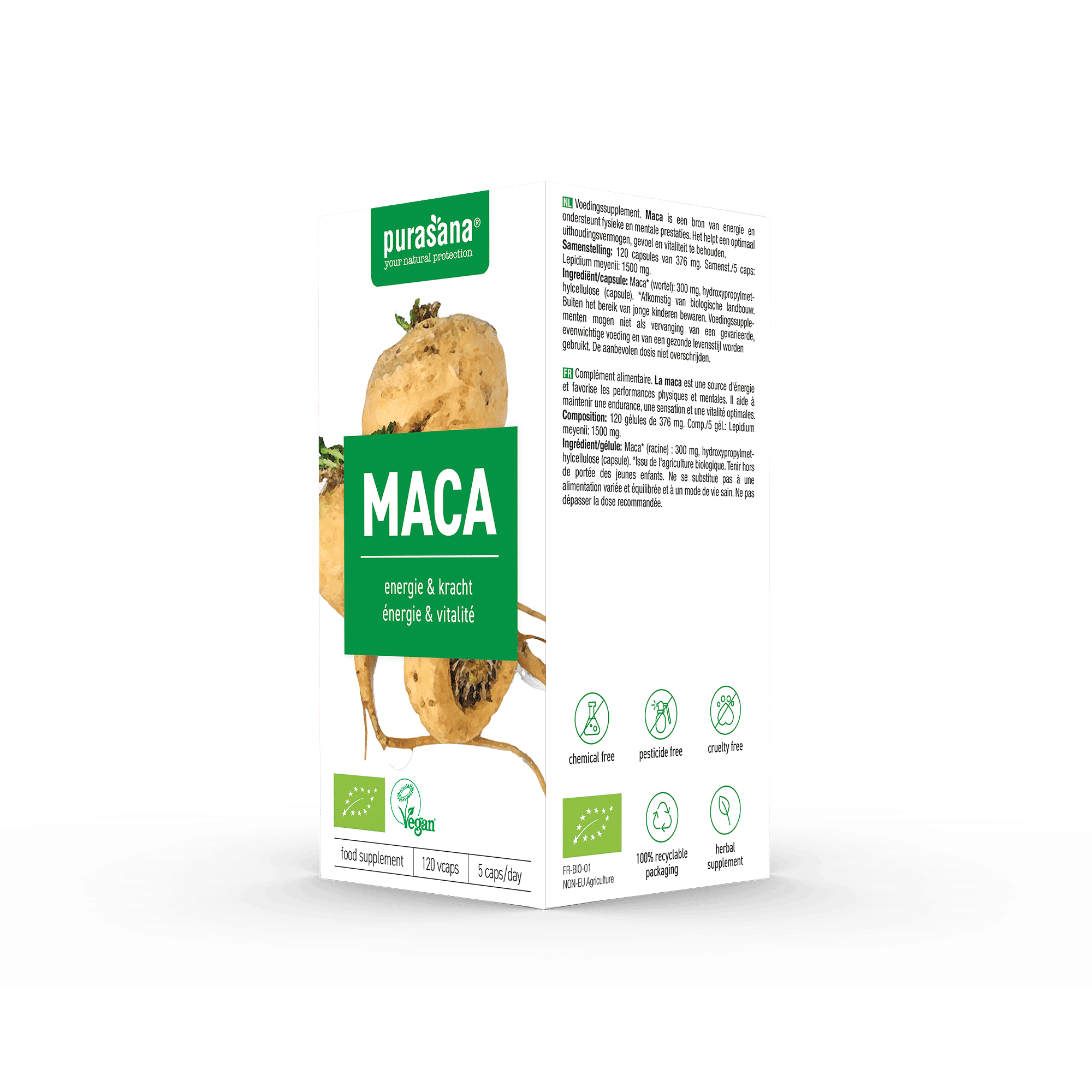 Maca is een knolgewas dat in het Andesgebergte (Peru) groeit. Het is een zeer sterk gewas dat op grote hoogte en onder extreme omstandigheden kan overleven. De voedingsstoffen die voor de mens interessant zijn, zitten vooral in de wortels van de plant. Deze worden al sinds jaar en dag door de plaatselijke bevolking gegeten.