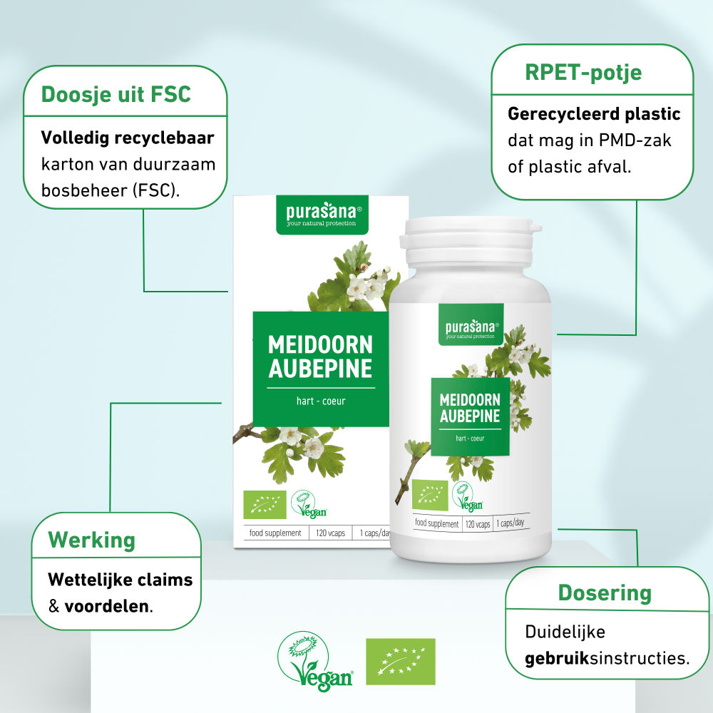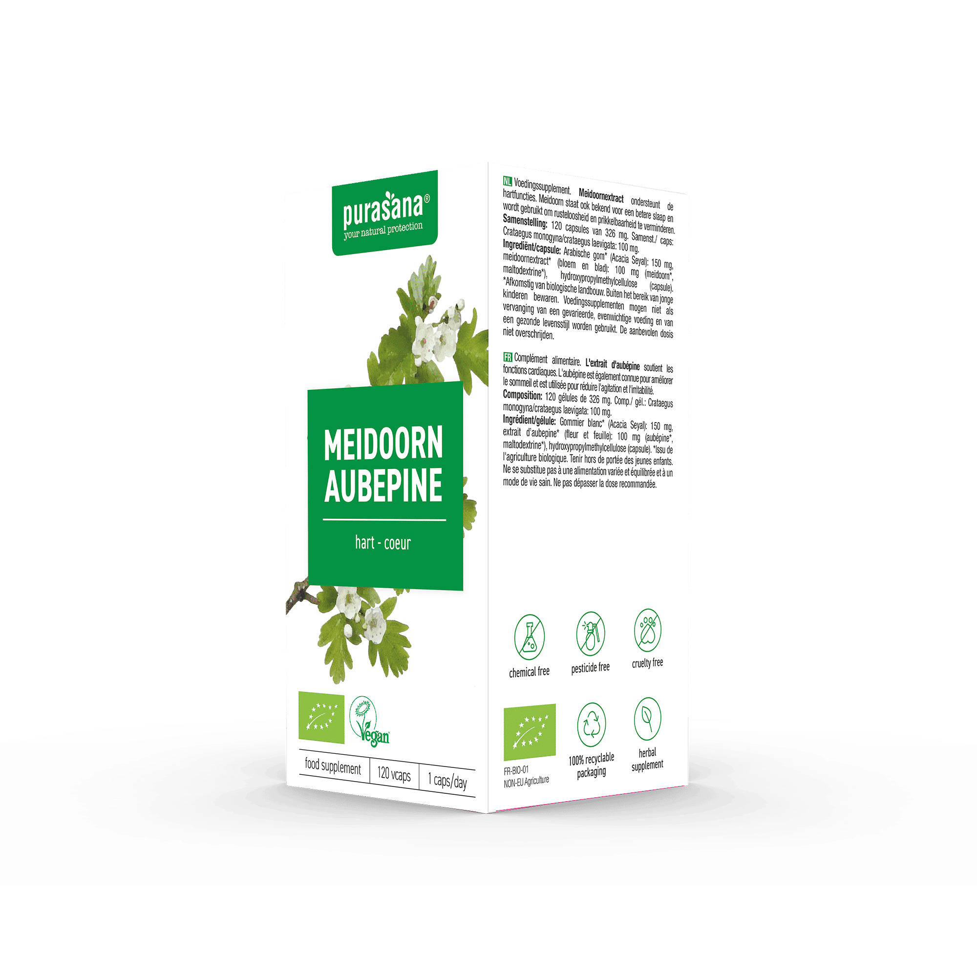 Arabische gom* (Acacia Senegal), meidoornextract* (bloem en blad), capsule: vegetarisch geleermiddel (hydroxypropylmethylcellulose)