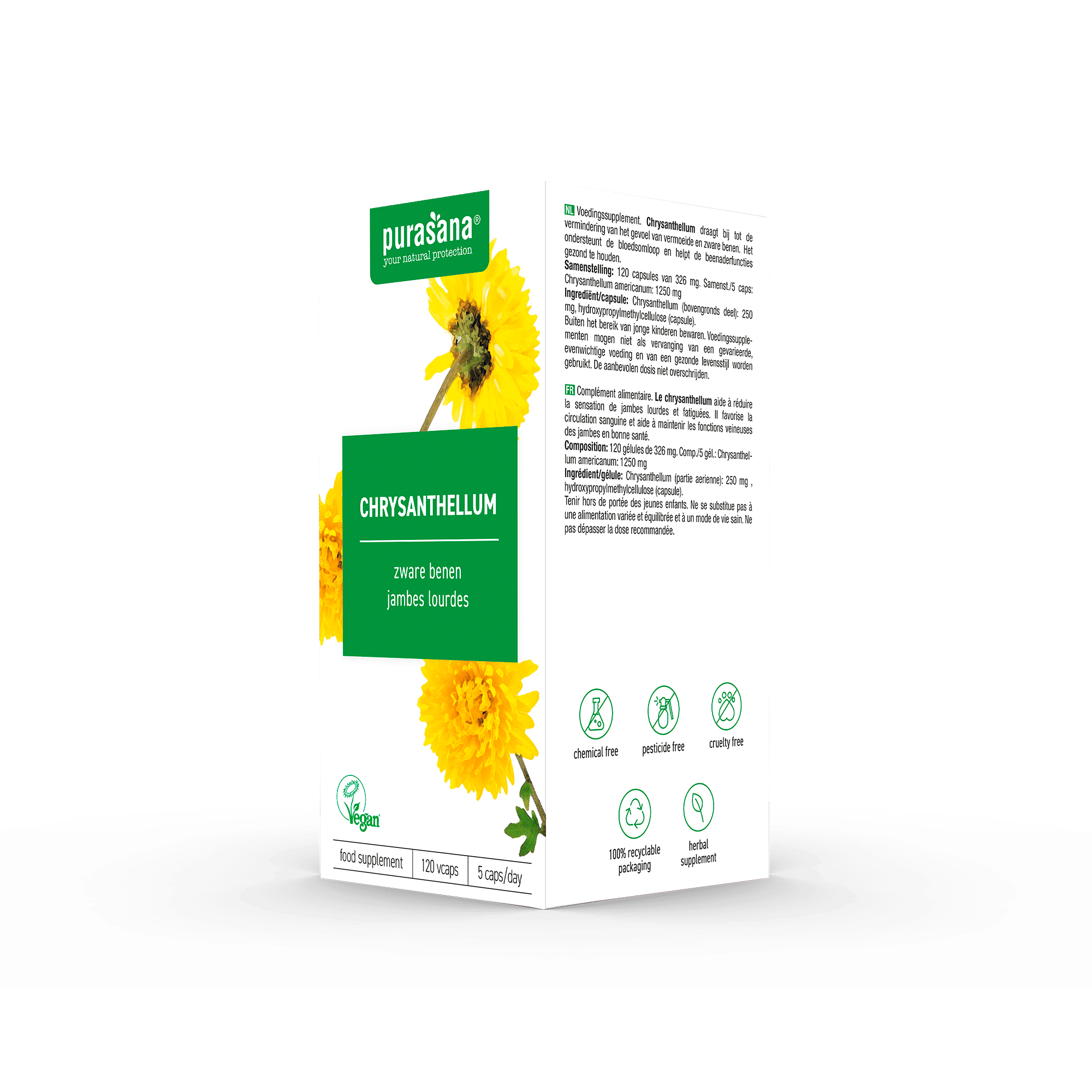 Chrysanthellum draagt bij tot de vermindering van het gevoel van vermoeide en zware benen. Het ondersteunt de bloedsomloop en helpt de beenaderfuncties gezond te houden*