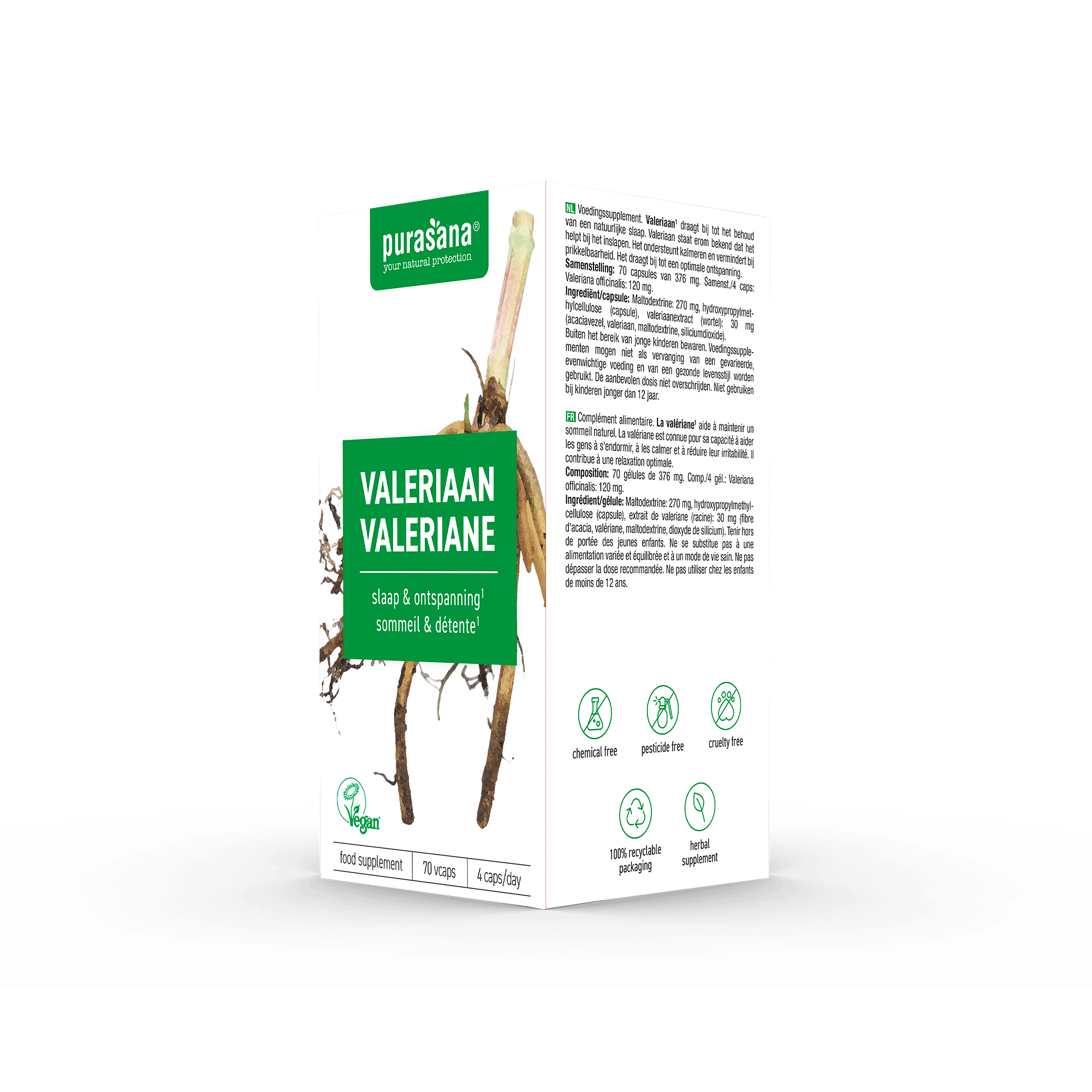 Gebruik 4 capsules per dag samen met een groot glas water. Valeriaan kan je nemen eender wanneer je je gespannen voelt.