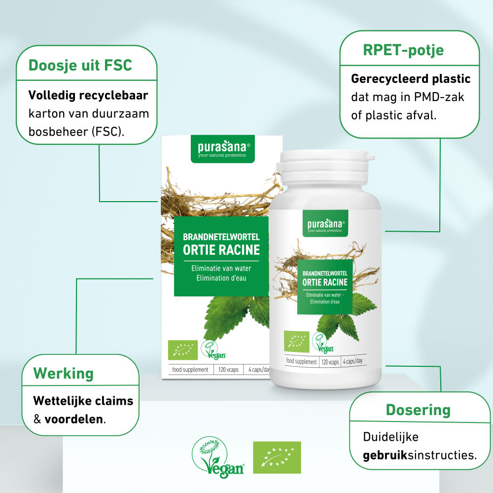 Brandnetelwortel ondersteunt de afvoer van water door de nieren*