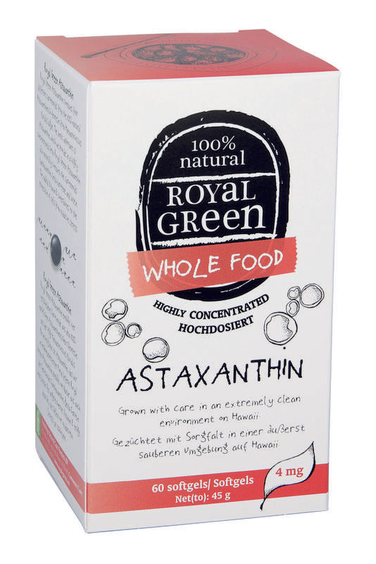 Astaxanthine is afkomstig van de groene alg Haematococcus pluvialis. Royal Green's Astaxanthine wordt in een uiterst schone omgeving op Hawaï gekweekt en is dus van 100% natuurlijke oorsprong.