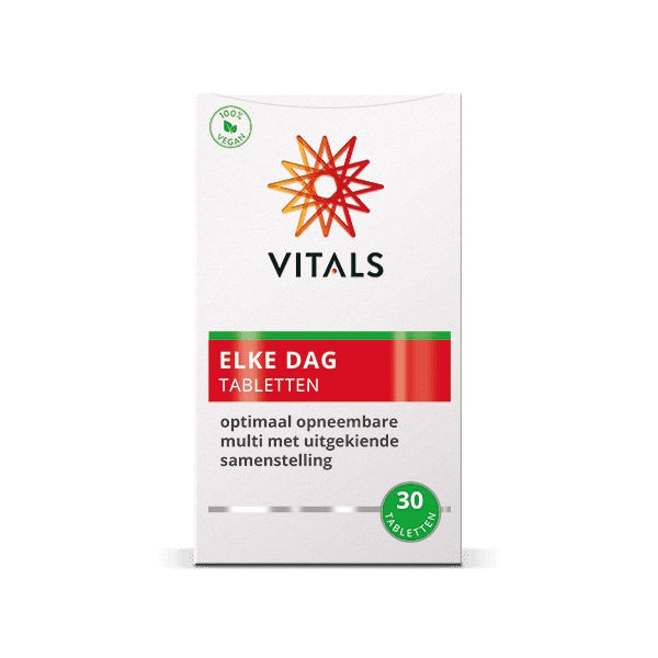 Elke Dag is specifiek ontworpen voor volwassenen. Vitals heeft aparte multi’s ontwikkeld voor kinderen, ouderen en voor vrouwen die zwanger zijn of willen worden. Zie ook Elke Dag Junior, Elke Dag 50+ en Elke Dag Mama. Jongeren en (jong)volwassenen kunnen kiezen voor Elke Dag Basis (1 per dag) of Elke Dag Capsules (jongeren 1 capsule per dag en volwassenen 2 capsules per dag). Daarnaast is er Elke Dag Poeder voor diegenen die liever geen capsule of tablet slikken, of de multi liever ergens doorheen mengen. Volwassenen en ouderen die het beste van het beste willen, kiezen voor Elke Dag Platinum (twee tabletten per dag).