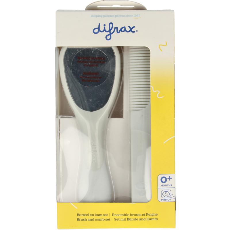 Borstel en kam set ontworpen voor baby's gevoelige hoofdhuid. De kam heeft speciale nopjes op de tanden ter bescherming van de hoofdhuid en oren.