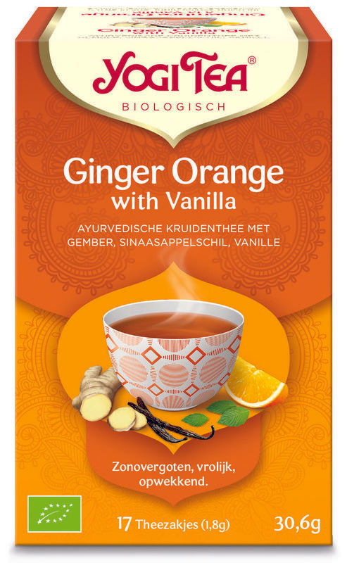 Ayurvedische kruidenthee met gember, sinaasappelschil en vanille.
