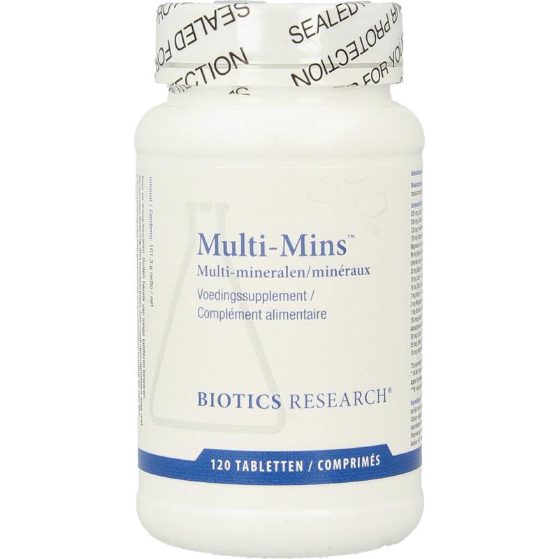 Biotics Multi-Mins is een breed en krachtig multi mineralenpreparaat waarin ook de bijzondere spoorelementen zoals borium, lithium, rubidium en vanadium zijn opgenomen.
