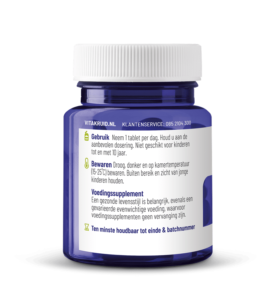 Een gevarieerde, evenwichtige voeding en een gezonde levensstijl zijn belangrijk. Een voedingssupplement is geen vervanging van een gevarieerde voeding.