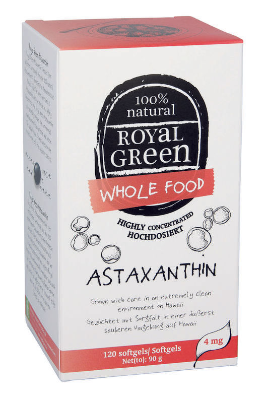 Astaxanthine is afkomstig van de groene alg Haematococcus pluvialis. Royal Green's Astaxanthine wordt in een uiterst schone omgeving op Hawaï gekweekt en is dus van 100% natuurlijke oorsprong.