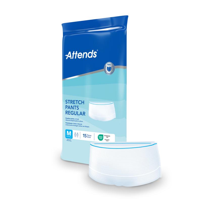 Attends Stretch Pants hebben een uniseks ontwerp en bieden betrouwbare fixatie en bescherming tegen doorlekken, zowel overdag als 's nachts. Aanbevolen om te dragen met - Attends inleggers, als Attends Soft, Attends Men en Attends Contours Regular / Air Comfort.