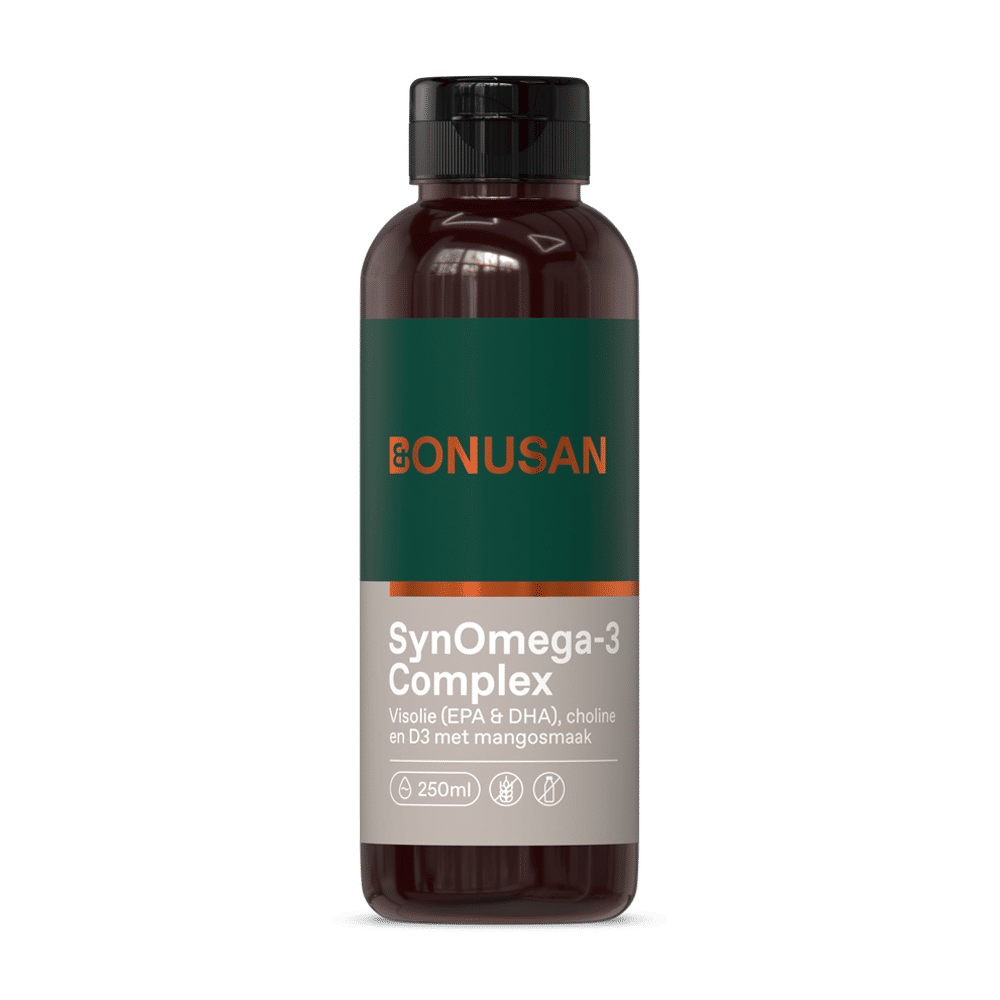 Bonusan SynOmega-3 combineert het goede van drie voedingsstoffen. Dit product bevat namelijk omega-3-vetzuren, choline en vitamine D3 in een handige mengbare emulsie met een prettige smaak. Een ideaal product voor kinderen en mensen die liever geen pillen slikken.