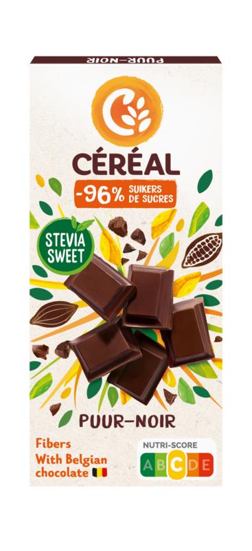 Bevat 96% minder suikers in vergelijking met een standaard pure chocoladetablet.