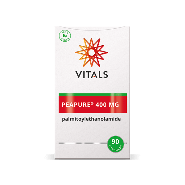 PeaPure® van Vitals bevat uitsluitend PEA met het PEA-opt® keurmerk, die geproduceerd wordt volgens een gepatenteerd productieproces. Dit zorgt ervoor dat het product een unieke verhouding bevat van PEA-deeltjes met een verschillende grootte (verkleinde, verfijnde en ultra-verfijnde deeltjes). Palmitoylethanolamide dat niet op deze speciale manier behandeld is, kan moeilijk opneembaar zijn voor het lichaam en daardoor minder werkzaam. PEA-producten met het PEA-opt® keurmerk bevatten gegarandeerd palmitoylethanolamide met de hoogste zuiverheid en kwaliteit, en een optimale opneembaarheid. Elke batch PEA gebruikt voor PeaPure® wordt geanalyseerd op kwaliteit en zuiverheid in een onafhankelijk laboratorium.