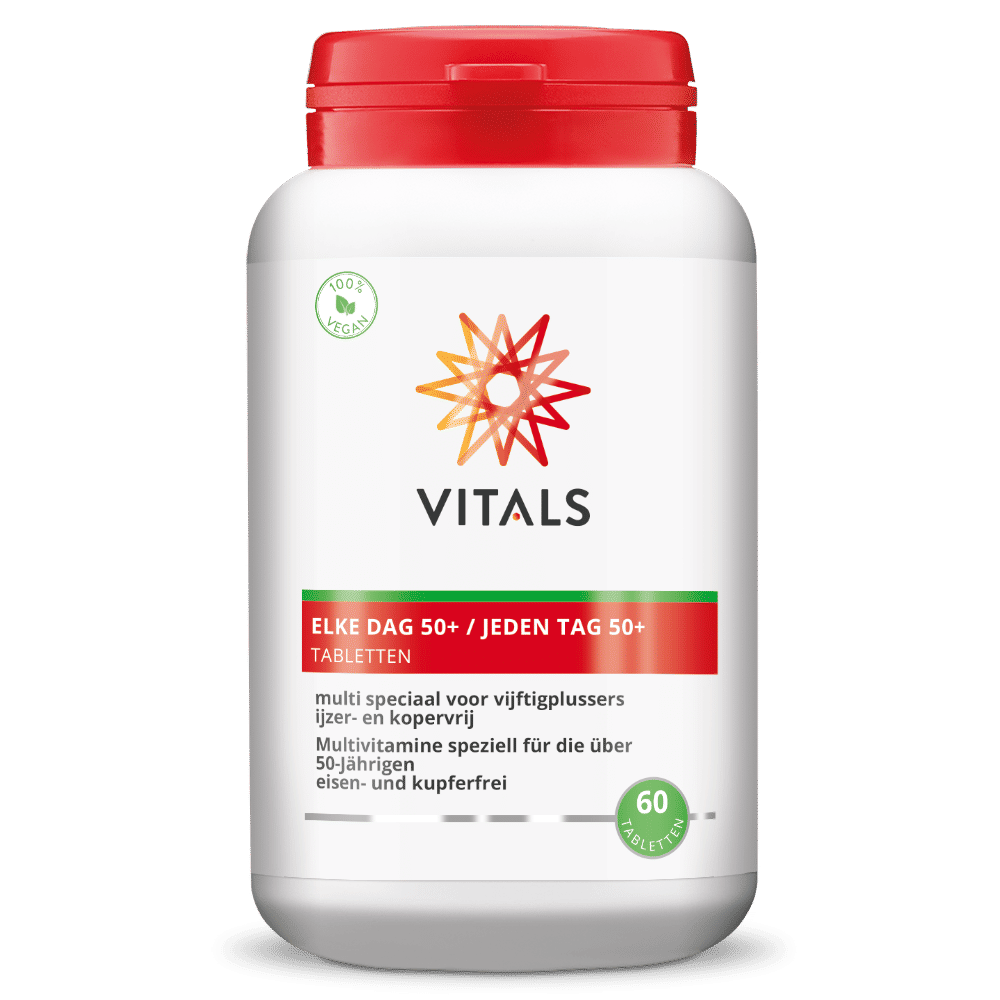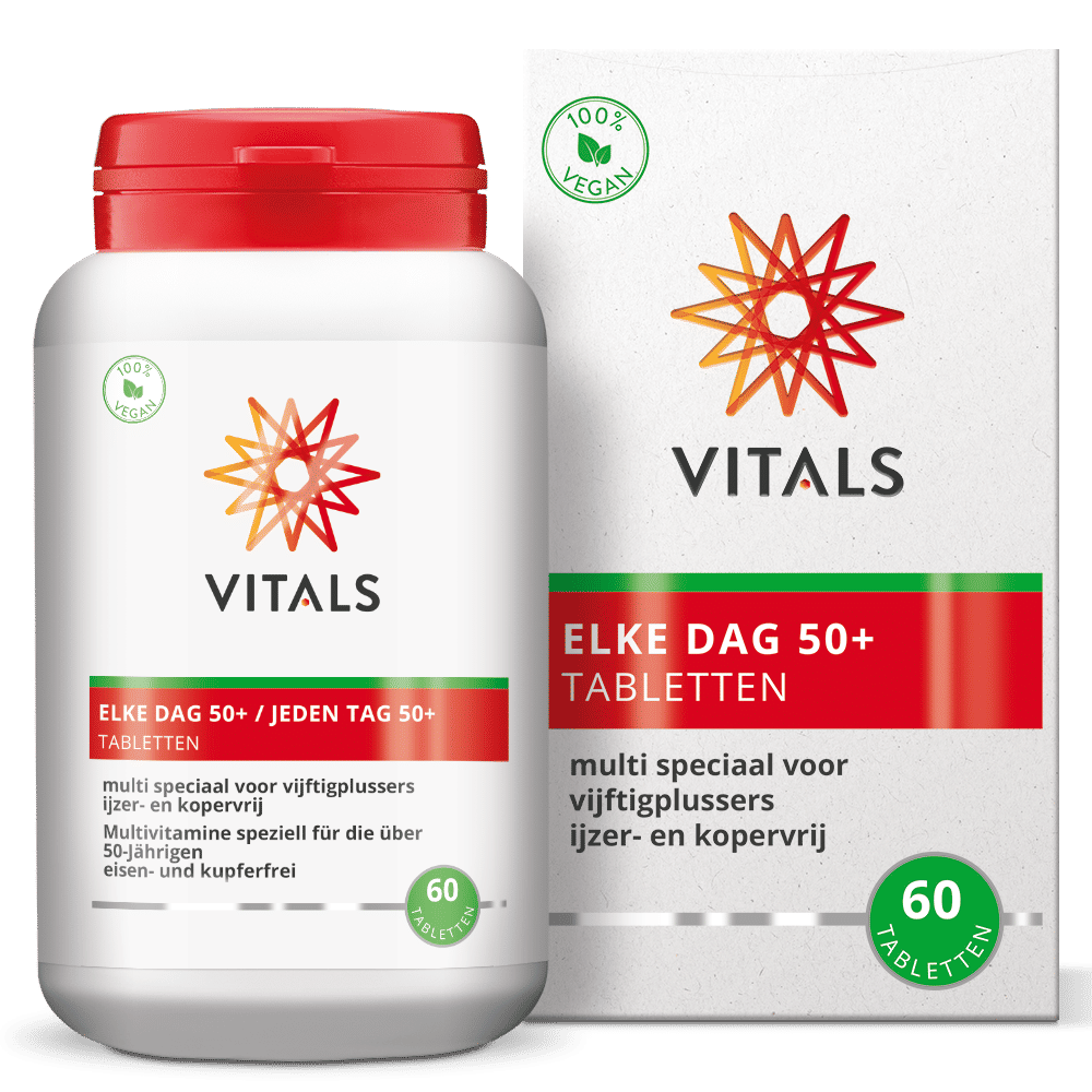 Elke Dag 50+ (voorheen Elke Dag Senior) is speciaal geformuleerd voor mannen en vrouwen boven de 50 jaar. Het lichaam krijgt met de jaren andere nutritionele behoeften. Zo neemt de behoefte aan ijzer en koper af. Elke Dag 50+ bevat daarom geen ijzer en koper. Waar mannen en vrouwen op die leeftijd wel behoefte aan hebben is extra vitamine B12 en voldoende foliumzuur (folaat), onder andere ter ondersteuning van mentale functies zoals het geheugen. Ook zijn hogere doseringen vitamine K2 en D3 belangrijk voor deze leeftijdsgroep.