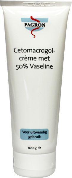Cetomacrogolcrème met 50% vaseline is geschikt voor de zeer droge huid. Deze vette crème houdt de huid soepel en voorkomt verdere uitdroging. Het hoge percentage vaseline in deze vette crème zorgt voor een hoger vetgehalte en dekt de huid af (occlusie) zo kunnen irriterende stoffen van buitenaf de huid niet binnendringen. Deze vette crème draagt bij aan de bescherming van de huid, waardoor de huid minder water afstaat en wordt gehydrateerd.