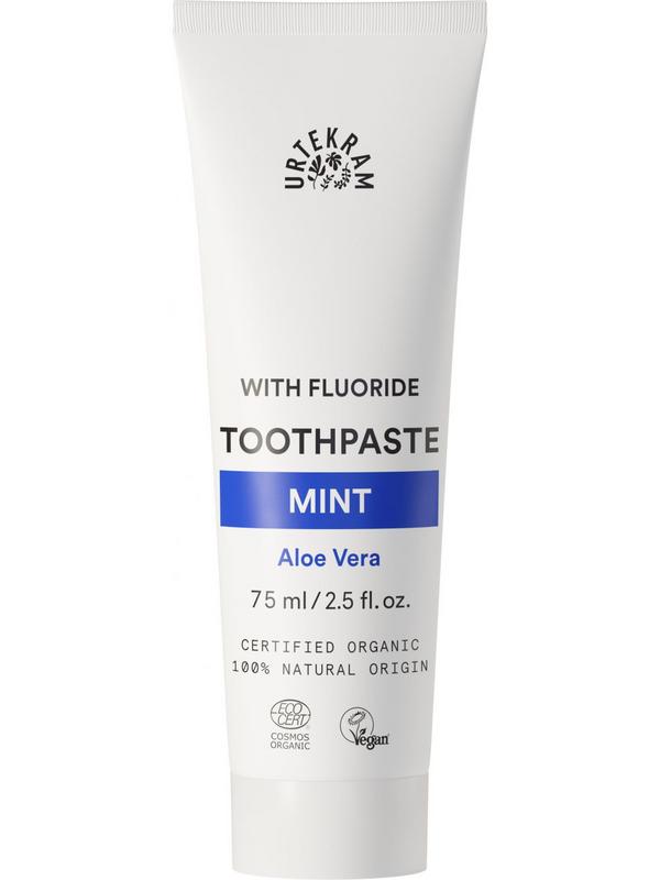 De nieuwe Cosmos Organic Standard maakt het mogelijk om ook sodium fluoride te gebruiken. Daarom is er de nieuwe Urtekram Mint tandpasta met fluor en aloë vera voor iedereen, die naast de natuurlijke bescherming van Urtekram tandpasta ook fluorbescherming wenst.