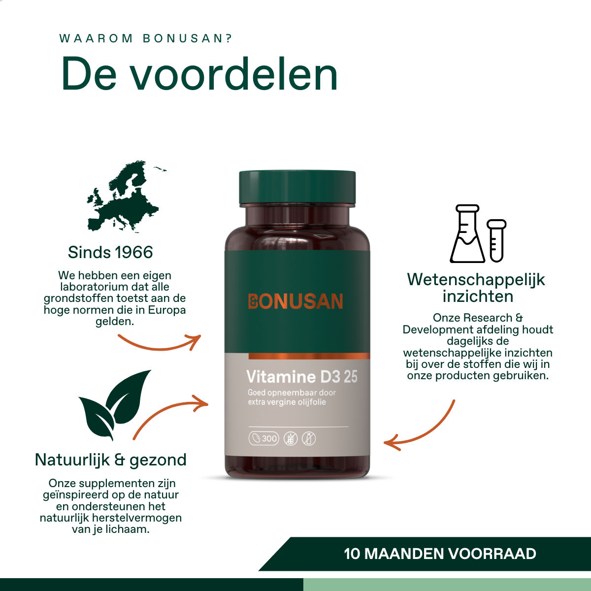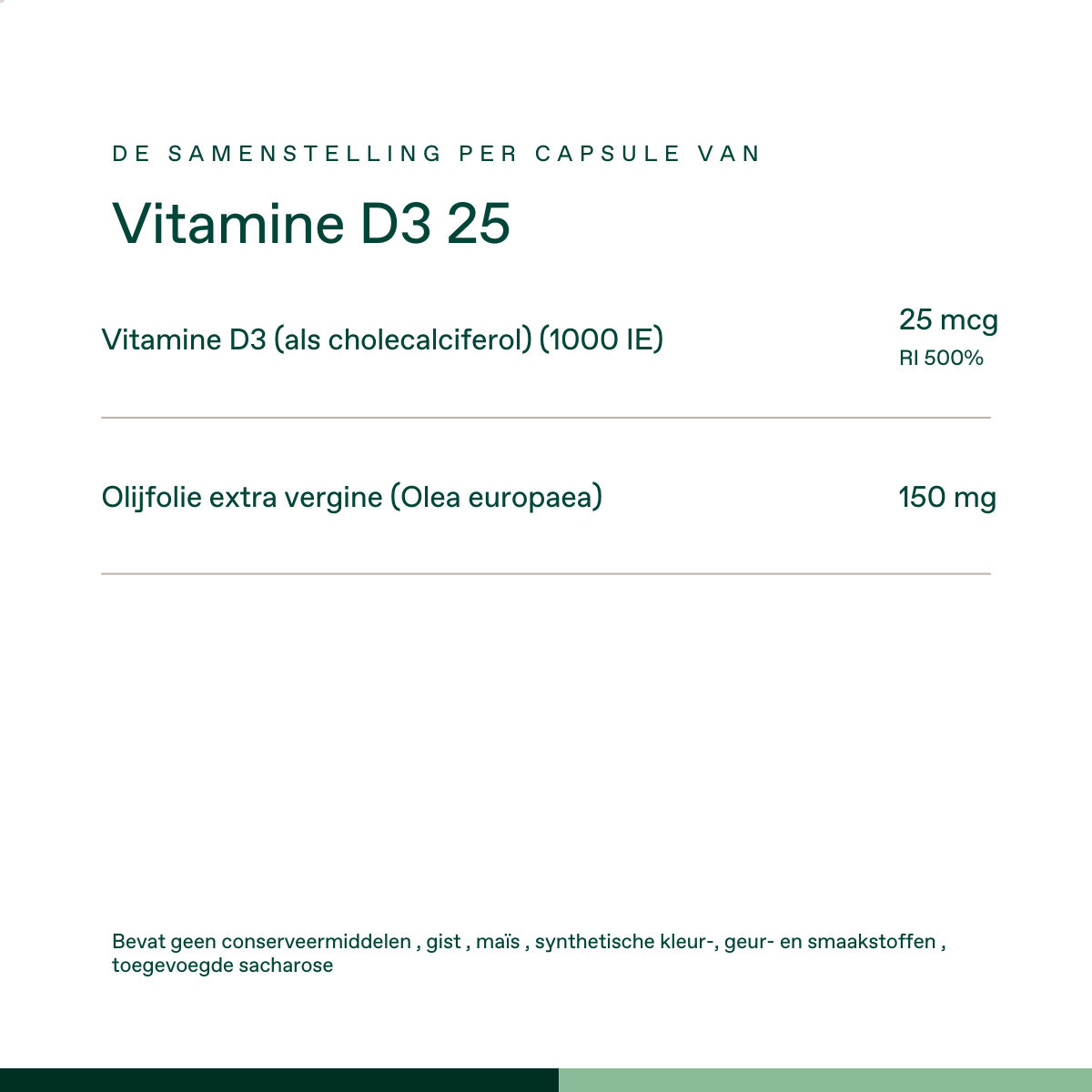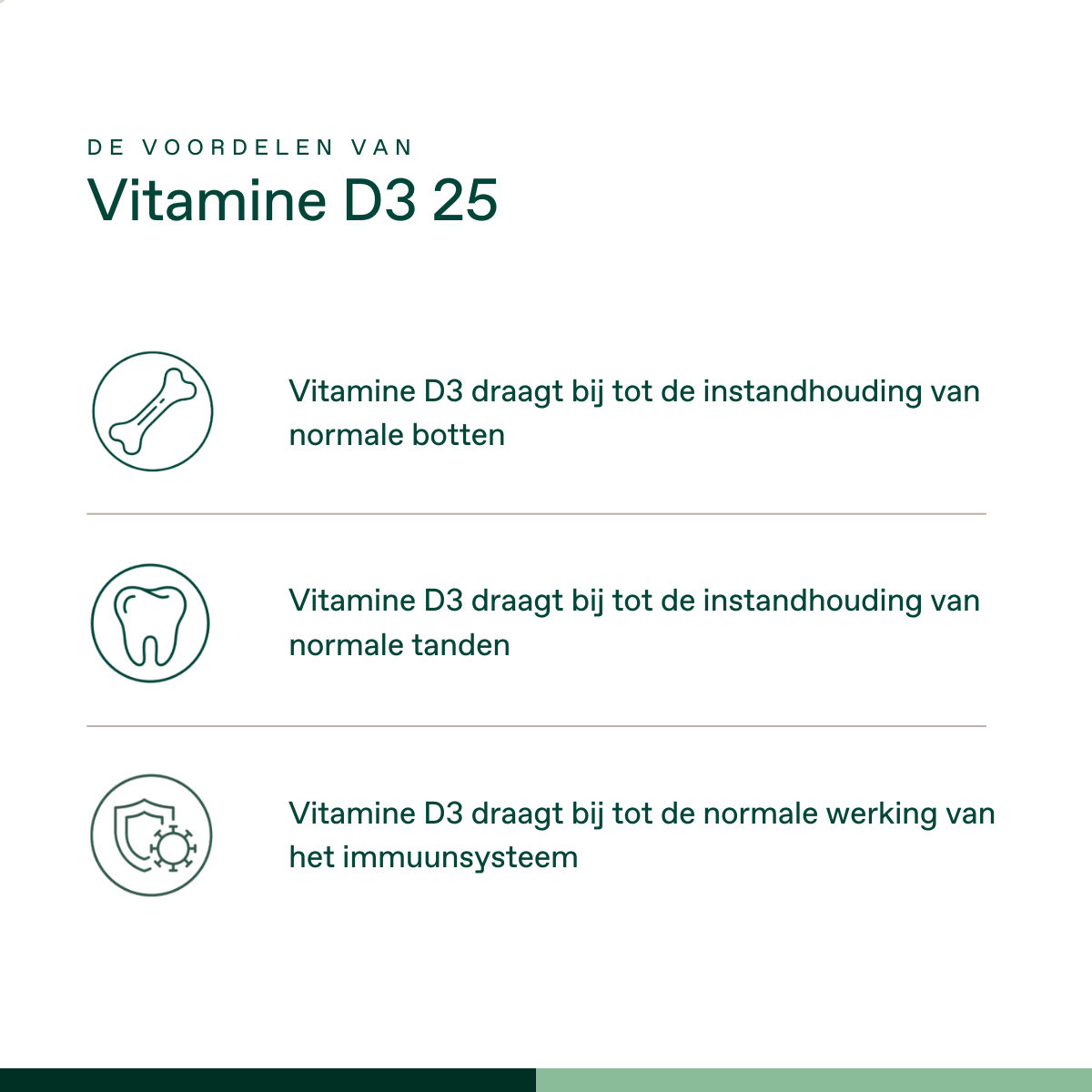 - Goede dagelijkse aanvulling van 25 microgram vitamine D3
