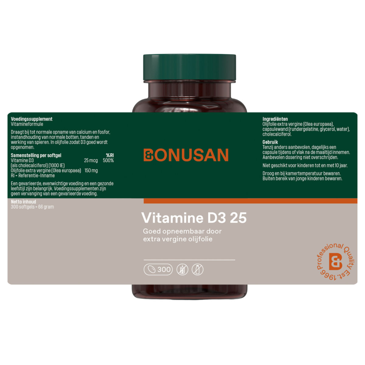 Met de Bonusan Vitamine D3 25 mcg softgelcapsules pas je je dosis vitamine D aan afhankelijk van het jaargetijde. In Nederland is bijvoorbeeld een kleine softgelcapsules in de zomer een prettige aanvulling. Terwijl je in de winter eerder tot wel drie softgels wilt nemen.