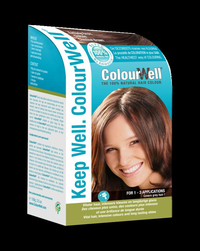 ColourWell is een unieke 100% natuurlijke haarkleuring zonder schadelijke chemicaliën zoals p-Phenylenediamine (PPD), Ammoniak, Parabenen, Resorcinol, Peroxide, etc. ColourWell bevat met zorg geselecteerde natuurlijke medicinale ingrediënten erkend door Ayurveda. ColourWell respecteert je natuurlijke haarkleur en is zeer geschikt voor mensen met een gevoelige huid. Het voorkomt irritatie van de hoofdhuid en kan zélfs tijdens de zwangerschap veilig worden gebruikt.