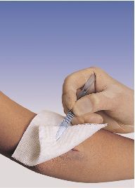voor wondverzorging, vooral voor het afdekken van drains, canules, extensies van fracturen, etc.