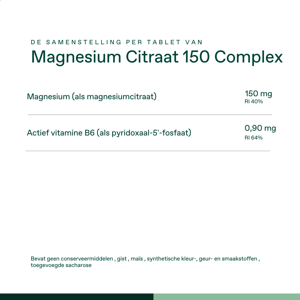 Magnesiumcitraat, vulstof (microkristallijne cellulose (cellulosegel), Croscarmellose natrium, Cellulose (HPC)), Antiklontermiddel (Magnesiumstearaat)< Vitamine B6 (Pyridoxaal-5-fosfaat), Glansmiddel (HPMC, MCT-olie)