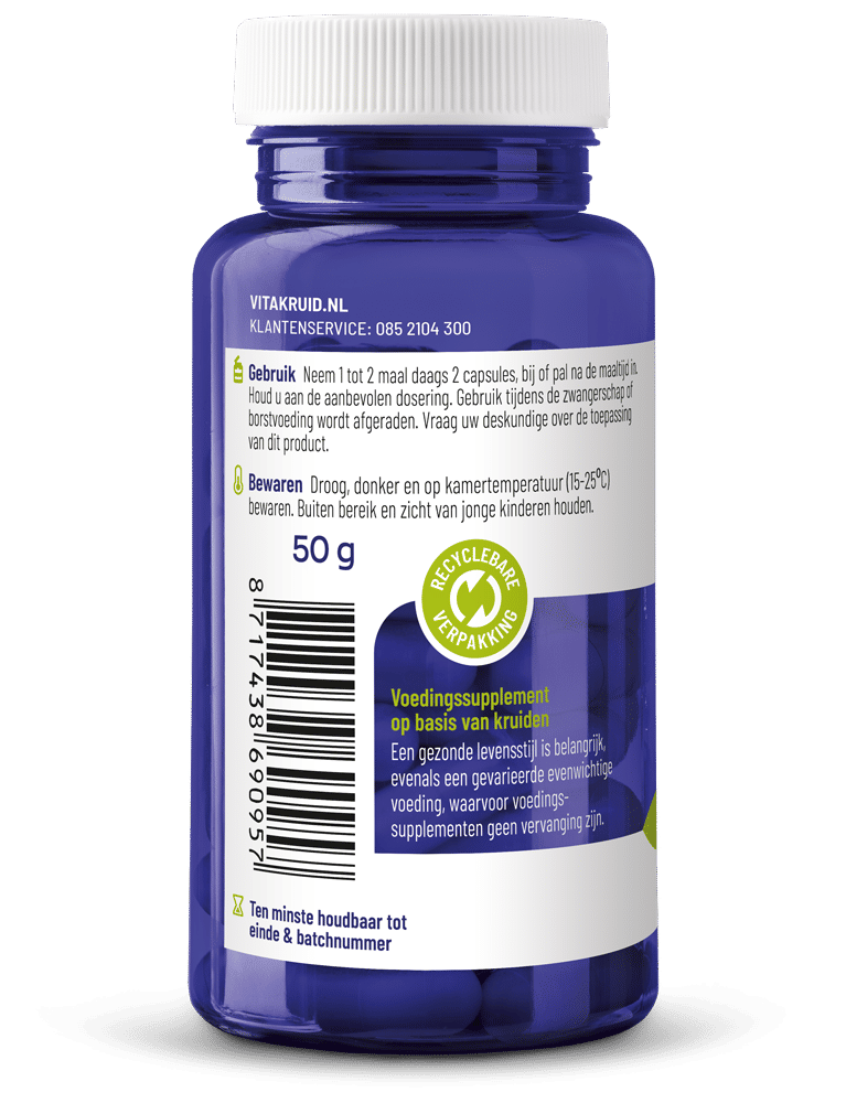 Een gevarieerde, evenwichtige voeding en een gezonde levensstijl zijn belangrijk. Een voedingssupplement is geen vervanging van een gevarieerde voeding.