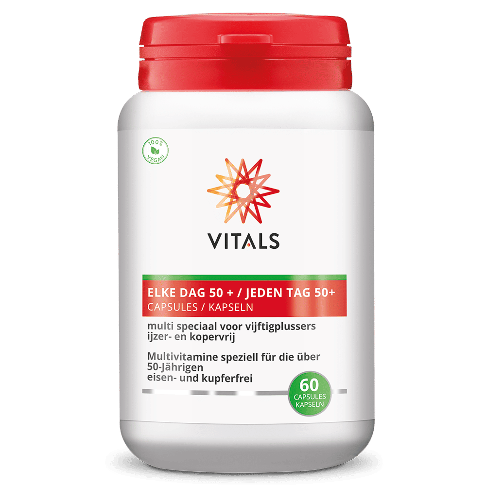 Elke Dag 50+ Capsules is ontworpen voor vijftigplussers die de voorkeur geven aan capsules in plaats van tabletten. Elke Dag 50+ Capsules bevat per twee capsules precies dezelfde doseringen als het product Elke Dag 50+ Tabletten, met uitzondering van vitamine C (100 mg i.p.v. 200 mg), calcium (30 mg i.p.v. 150 mg) en magnesium (30 mg i.p.v. 100 mg). Deze zijn in de capsules lager gedoseerd, simpelweg omdat er meer past in een tablet dan in twee capsules. Het product is samengesteld op basis van de meest recente wetenschappelijke inzichten, afgestemd op actuele gegevens aangaande de voedingsstatus in Nederland en de optimale innamehoeveelheden per nutriënt.