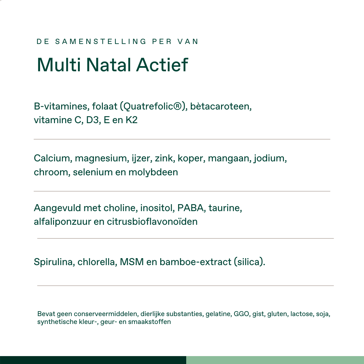 | Actief folaat (als glucosaminezout van 5-methyl-tetrahydrofolaat) | 400 mcg | 200 |
