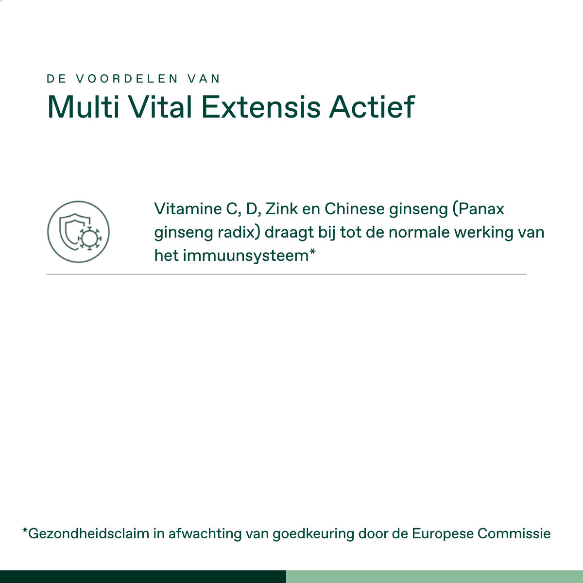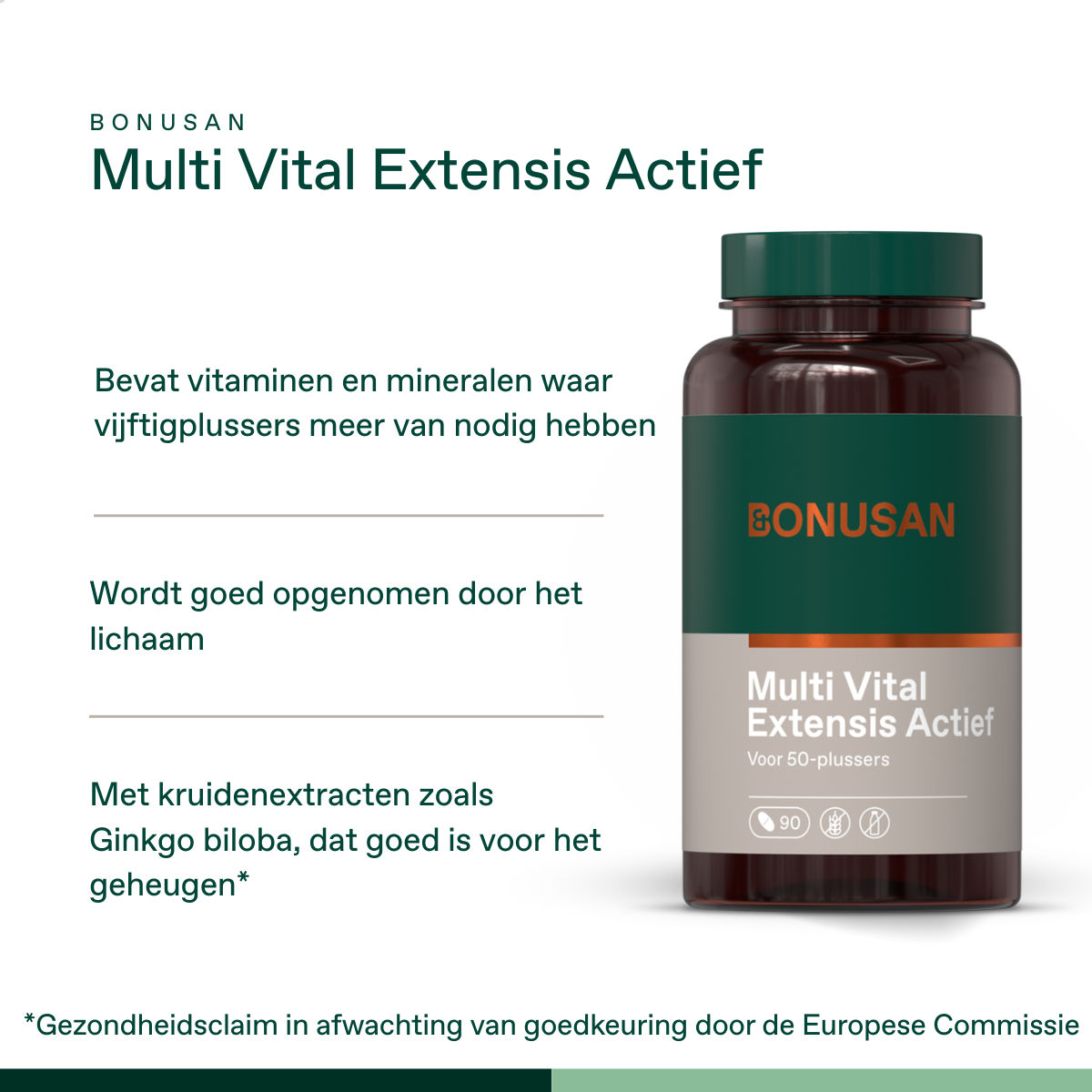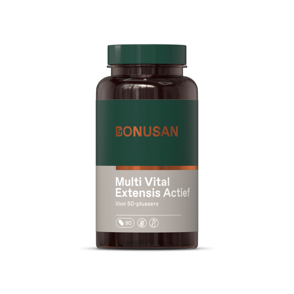 Multi Vital Extensis Actief is een uitgebalanceerde multi met speciale aandacht voor vijftigplussers en ouderen. Vitamine C, B6, B12 en foliumzuur zijn in de actieve vorm, voor een extra hoge biologische beschikbaarheid.