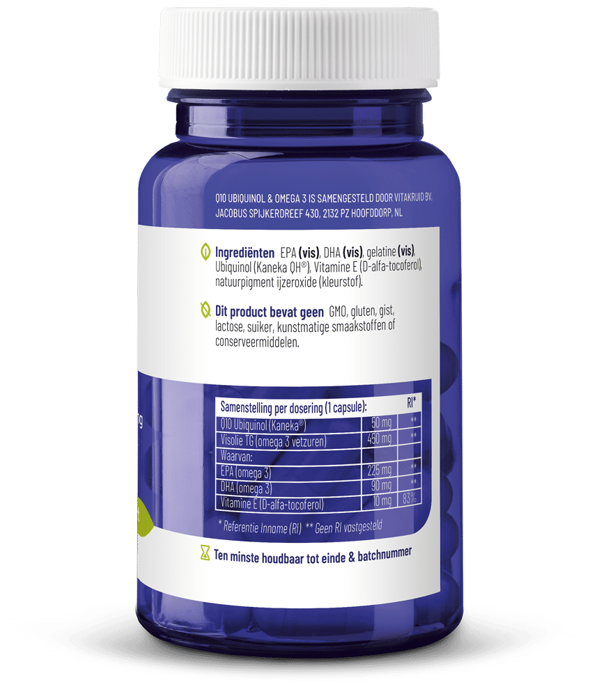 Daarnaast zijn cholesterol verlagende statines funest voor onze natuurlijke Q10 productie. Terwijl juist mensen die deze medicijnen gebruiken zo ontzettend gebaat zijn bij een toereikend Q10 pijl in de hartspiercellen. De combinatie van omega-3 en Q10 in één supplement lijkt dan niet meer dan logisch toch? Dat vindt Vitakruid dus ook!