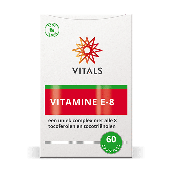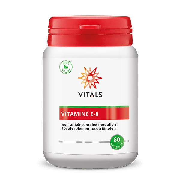 Vitamine E-8 is uniek in zijn soort en bestaat, zoals de naam al aangeeft, uit alle 8 vormen van vitamine E (tocoferolen en tocotriënolen) waarbij het SupraBio®-systeem zorgt voor verhoogde opneembaarheid en biologische beschikbaarheid. Een compleet, gebalanceerd vitamine E-complex van superieure kwaliteit. Bij de ontwikkeling van dit product zijn vele grondstoffen afgevallen omdat deze niet aan de hoge kwaliteitseisen bleken te voldoen. Voor dit product is gekozen voor Nutrabiol T50™ (tocoferolen) en EVNol SupraBio™ (tocotriënolen). Grondstoffen die gegarandeerd voldoen aan de allerhoogste eisen op het gebied van zuiverheid en kwaliteit.