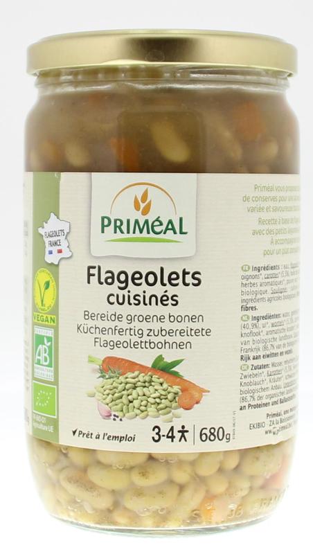 Water, Gerehydrateerde flageolets* (41%), Ui*, Wortels* (5,5%), Zonnebloemolie*, Zeezout, Knoflook*, Aromatische kruiden*, Zwarte peper*.